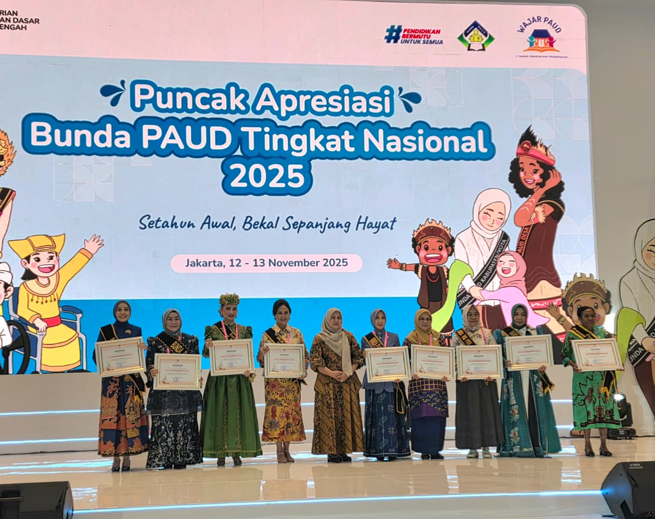 JAKARTA — Ketua Tim Penggerak PKK Sulawesi Utara, Ny. Anik Yulius Selvanus, yang juga menjabat sebagai Bunda PAUD Sulut menerima Penghargaan “Bunda PAUD Sulawesi Utara Peduli PAUD” pada ajang Apresiasi Bunda PAUD Tingkat Nasional Tahun 2025.