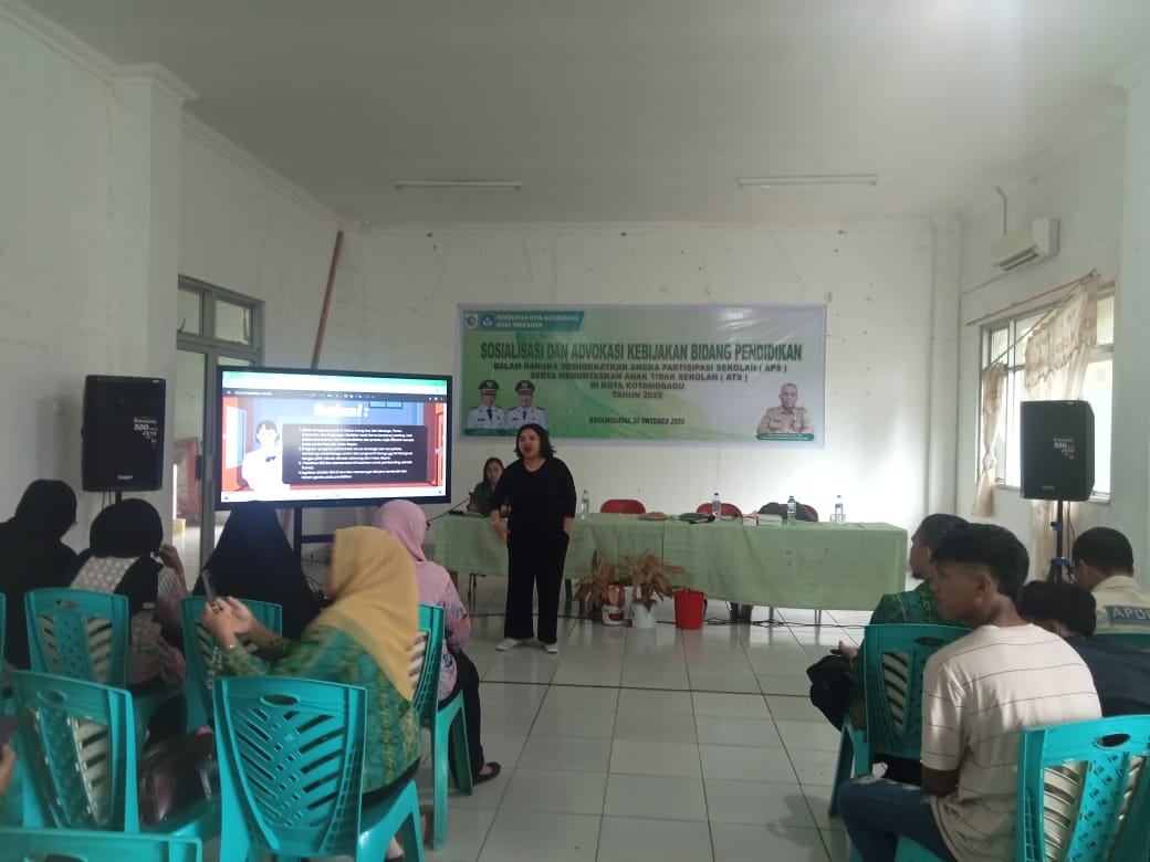 Hal tersebut diwujudkan melalui kegiatan Sosialisasi dan Advokasi Kebijakan Bidang Pendidikan dengan fokus pada peningkatan Angka Partisipasi Sekolah (APS) serta penuntasan ATS tahun 2025, yang digelar di Aula Dinas Pendidikan Kota Kotamobagu, Kamis (30/10/2025),