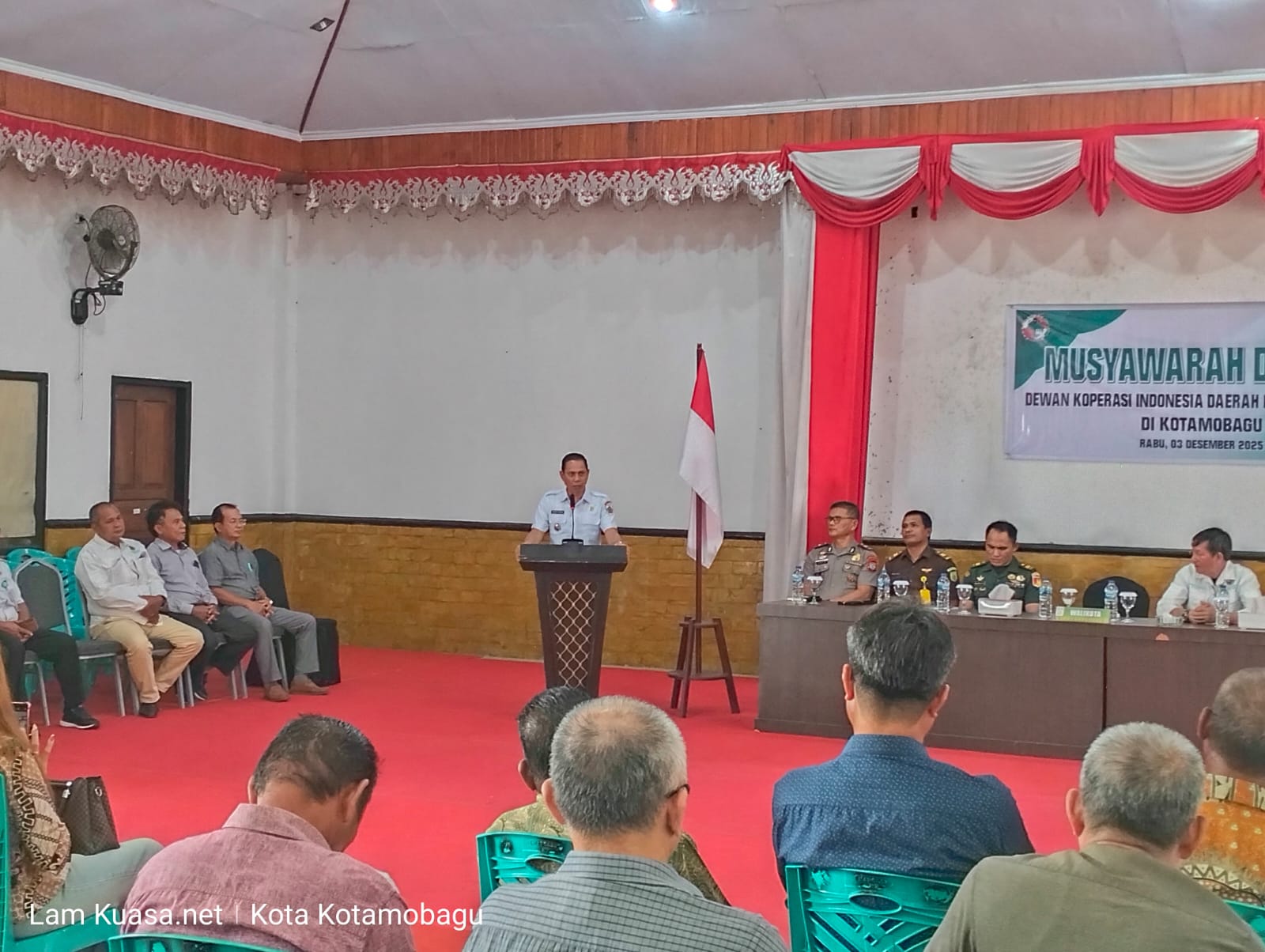 KOTAMOBAGU — Wali Kota Kotamobagu, Weny Gaib resmi membuka Musyawarah Daerah (Musda) Dewan Koperasi Indonesia Daerah (Dekopinda) Kota Kotamobagu yang bertempat di Aula Rumah Dinas Wali Kota, Rabu (3/12/2025).