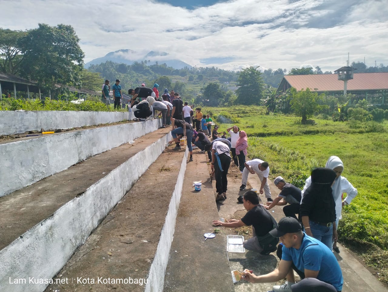 Kegiatan yang melibatkan seluruh jajaran Aparatur Sipil Negara (ASN), perangkat desa dan kelurahan ini berlangsung dengan penuh semangat kebersamaan. Sejak pagi, para peserta tampak bergotong-royong membersihkan area sekitar stadion dan melakukan pengecatan.