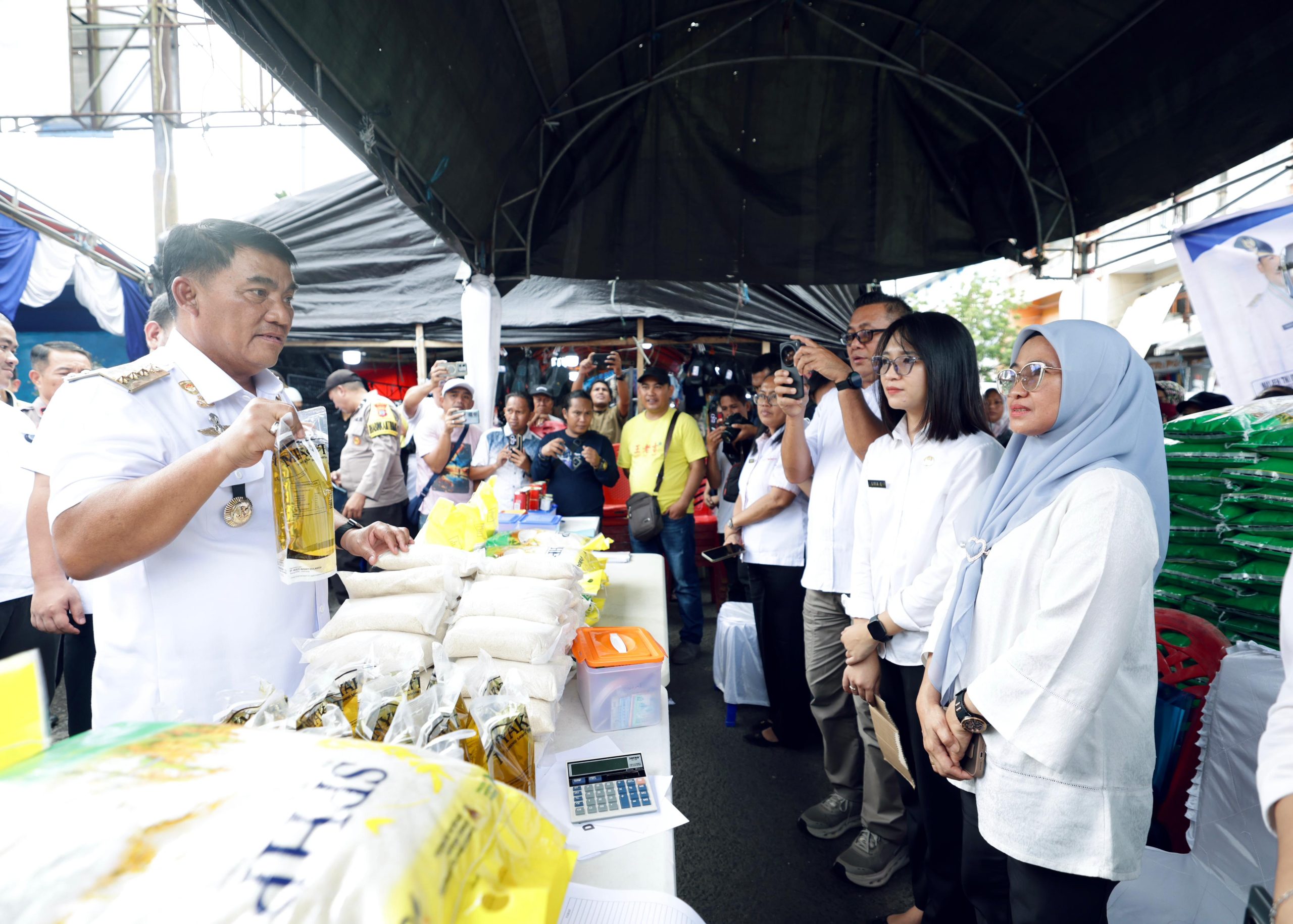 Gubernur juga berdialog dengan pedagang dan masyarakat. Ia menanyakan harga sejumlah komoditas yang dijual dalam kegiatan tersebut, seperti bawang, cabai, dan daging ayam.