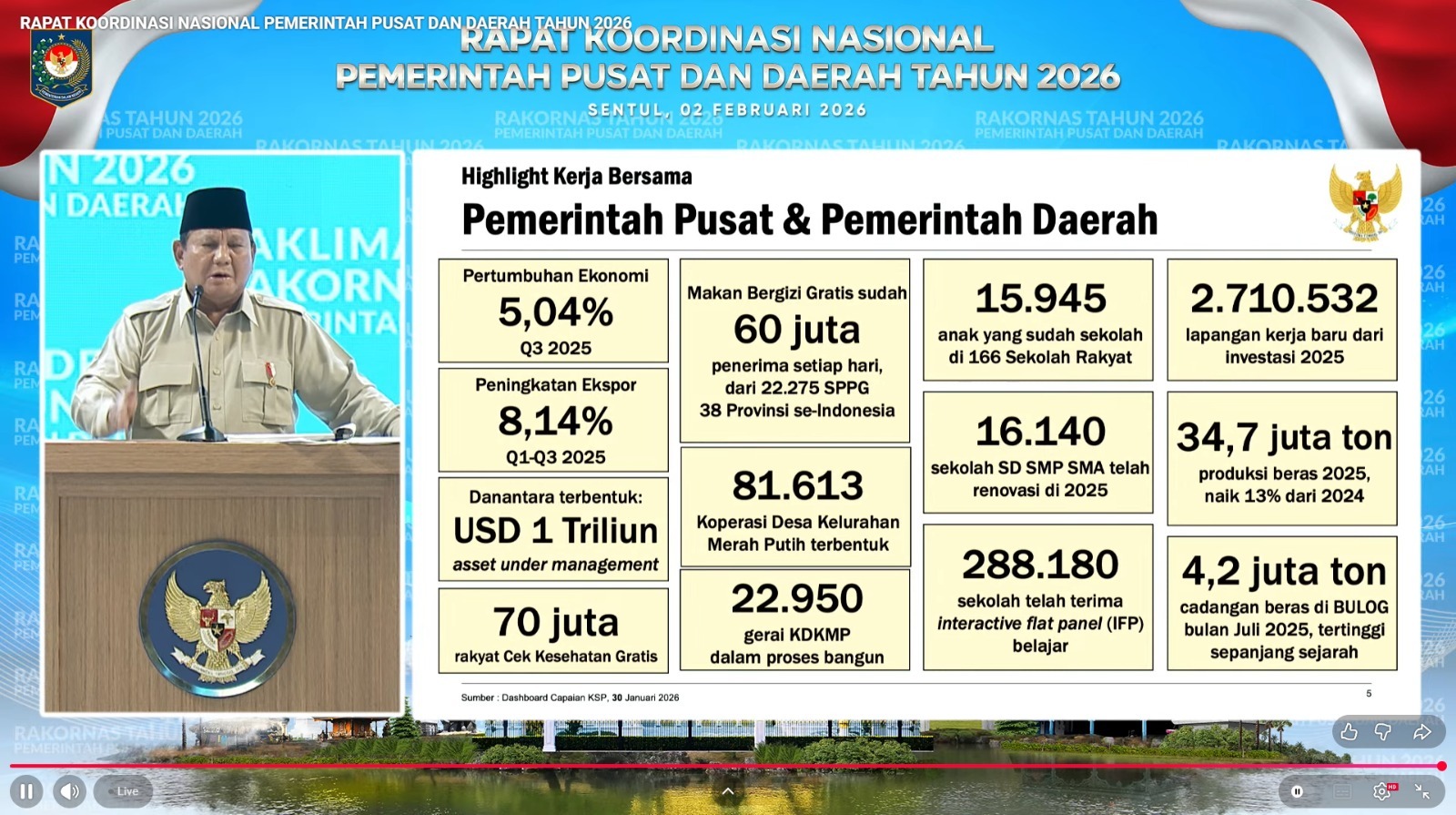 “Pemerintah pusat dan daerah harus berjalan dalam satu irama, satu visi, dan satu tujuan demi kepentingan rakyat,” tegas Presiden.