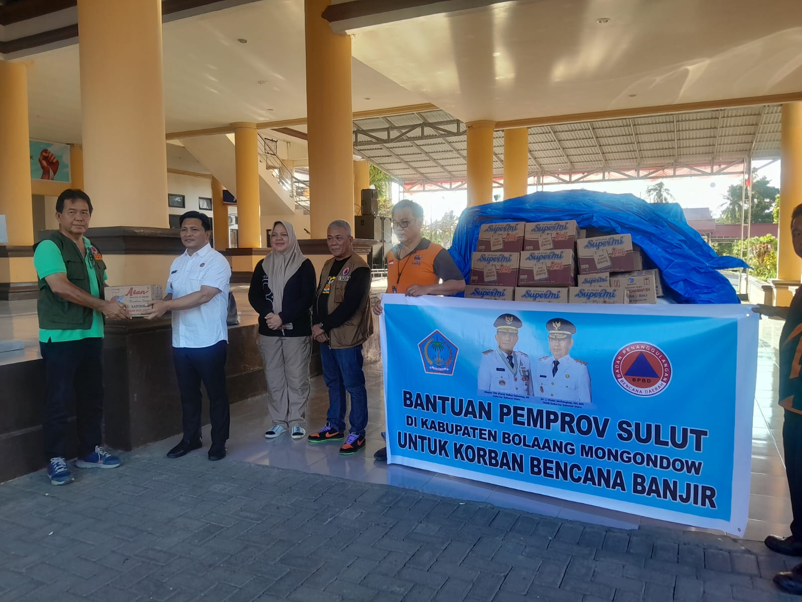 Bantuan diserahkan oleh Kepala Badan Penanggulangan Bencana Daerah (BPBD) Provinsi Sulut, Adolf Tamengkel, mewakili Gubernur YSK. Penyerahan tersebut berlangsung di Kantor Bupati Bolaang Mongondow, diterima langsung oleh Wakil Bupati Bolmong, Doni Lumenta.