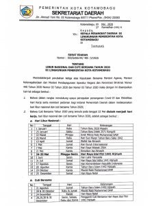 Kuasa.NET, KOTAMOBAGU – Cuti bersama Apartur Sipil Negera (ASN) Pemkot Kotamobagu yang sedianya dimulai hari ini, Jumat (22/5/2020) diubah menjadi hari kerja. Hal itu menyusul terbitnya Surat Edaran Nomor: 003/setda-KK/485/V/2020 tentang libur nasional dan cuti bersama tahun 2020 dilingkungan Pemerintah Kotamobagu, sebagai tindak lanjuti perubahan ketiga atas keputusan bersama Menteri Agama, Menteri Ketenagakerjaaan, dan Menteri Pendayagunaan Apartur Negara dan Reformasi birokrasi Nomor 440 tahun 2020, Nomor 03 tahun 2020, dan Nomor Nomor 03 tahun 2020.