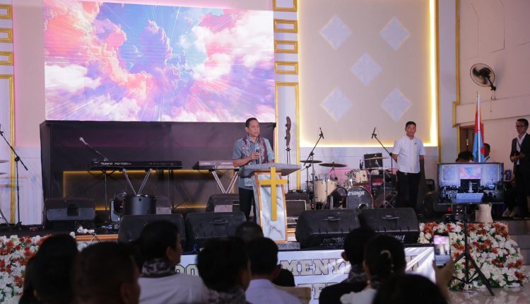 KOTAMOBAGU – Wali Kota Kotamobagu, dr. Weny Gaib, Sp.M., menghadiri kegiatan Indonesia Menyembah 25 Jam Tahun 2025 Chapter Bolaang Mongondow Raya, yang digelar oleh PELTAP GPdI Bolaang Mongondow Raya, bertempat di Gedung GPdI Eben Haezer Sia, Desa Sia, Kecamatan Kotamobagu Utara, Jumat (10/10/2025).
