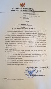 Dalam surat yang ditandatangi oleh Wakil Wali Kota Kotamobagu Nayodo Koerniawan, itu, disebutkan beberapa poin imbauan, salah satunya pelaksanaan shalat ied dianjurkan dilaksanakan di rumah masing-masing. (*)