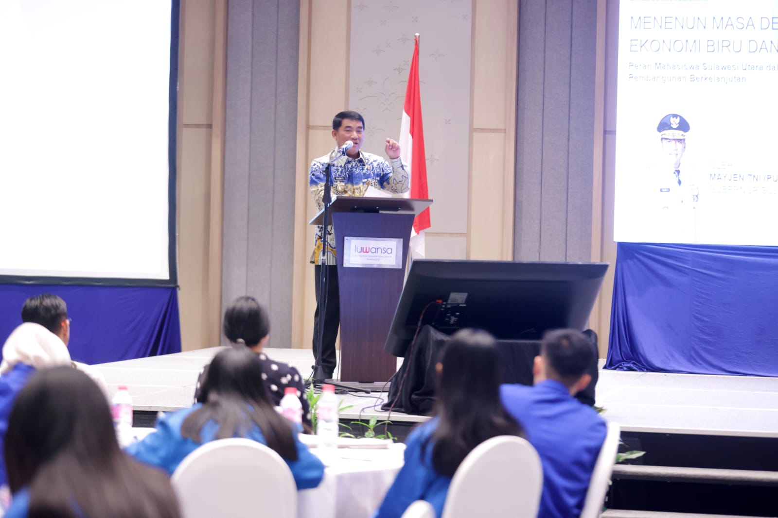 Acara dengan tema “Menenun Masa Depan Ekonomi Biru dan Hijau” tersebut dihadiri ribuan mahasiswa dari Unsrat, Unima, IAIN, Unsrit, hingga UT, bersama para rektor perguruan tinggi.
