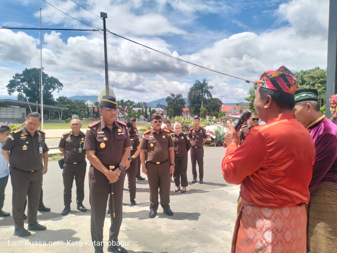 Kedatangan Kajati Sulut disambut langsung oleh Kepala Kejaksaan Negeri Kotamobagu, Saptono, bersama jajaran. Prosesi penyambutan berlangsung khidmat dan sarat kearifan lokal, dengan ditampilkannya tarian adat Bolaang Mongondow, Tuitan dan Itum-itum, sebagai bentuk penghormatan kepada pimpinan Kejati Sulut.