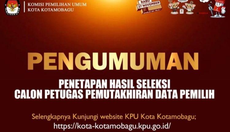KOTAMOBAGU– Seleksi terbuka Petugas Pemutakhiran Data Pemilih (Pantarlih) untuk pemilihan kepala daerah (Pilkada) di 33 desa/kelurahan se-Kotamobagu resmi ditetapkan, Sabtu (22/6/2024).