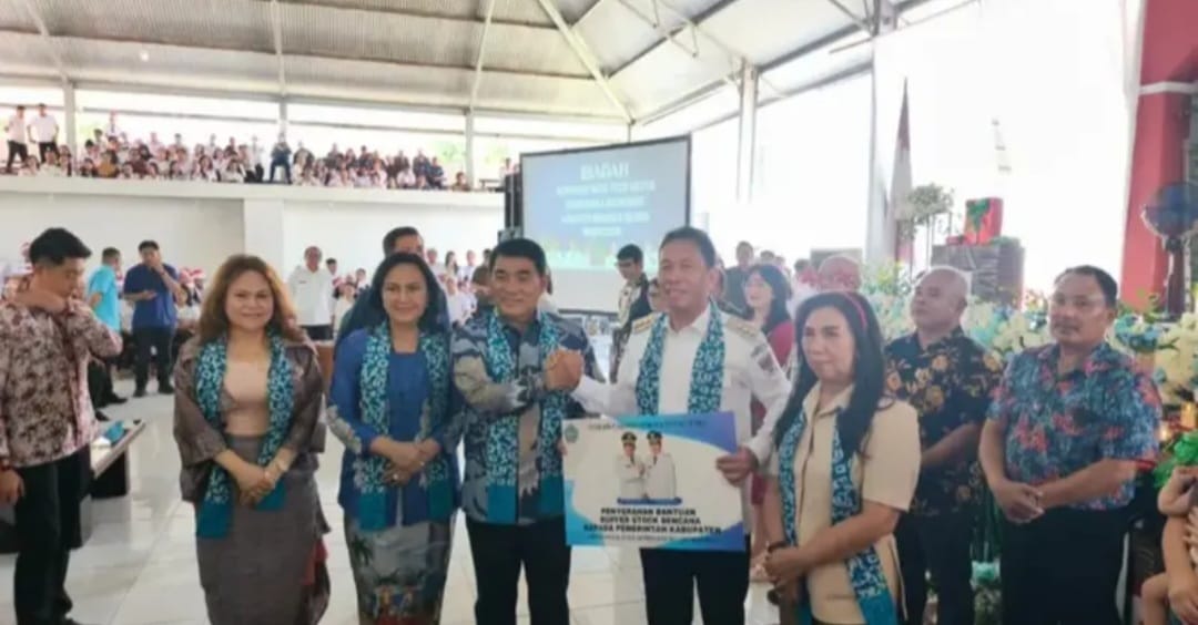 Kegiatan Natal bersama Pemerintah dan masyarakat Kabupaten Minahasa Selatan ditutup dengan penyerahan berbagai bantuan dari Pemerintah Provinsi Sulawesi Utara kepada Pemerintah Kabupaten Minahasa Selatan sebagai bentuk kepedulian dan komitmen terhadap pembangunan berkelanjutan. (Midi)