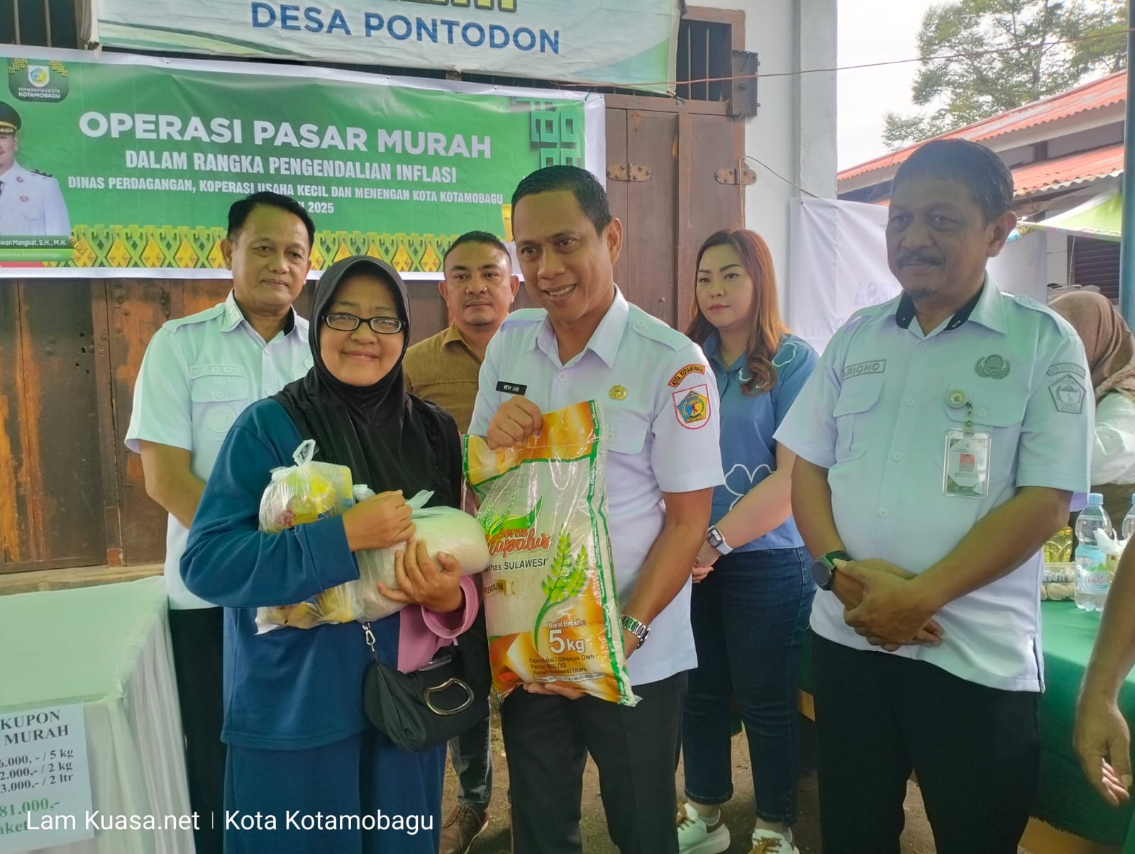 Operasi Pasar Murah yang dilaksanakan Pemkot Kotamobagu bekerjasama dengan Perum Bulog Sub Divre Bolaang Mongondow, dalam rangka Pengendalian Inflasi, turut dihadiri Perwakilan Perum Bulog Sub Divre Bolaang Mongondow, Kepala Dinas Perdagangan, Koperasi dan UKM Kota Kotamobagu, Ariono Potabuga, Staf Ahli Wali Kota Kotamobagu, Rudini Sako, Staf Ahli Wali Kota Kotamobagu, Christie. L. Supit, Camat Kotamobagu Utara, Muhammad Edo Mopobela, Sangadi Desa Pontodon, Mulyono Mokodompit dan Masyarakat Kecamatan Kotamobagu Utara. (Lamk)
