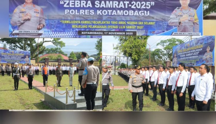 HUKRIM – Polres Kotamobagu resmi menggelar Operasi Kepolisian “Zebra Samrat 2025” setelah pelaksanaan apel pasukan dipimpin langsung oleh Kapolres Kotamobagu, AKBP Irwanto, di lapangan apel Mapolres Kotamobagu, Senin (17/11/2025).
