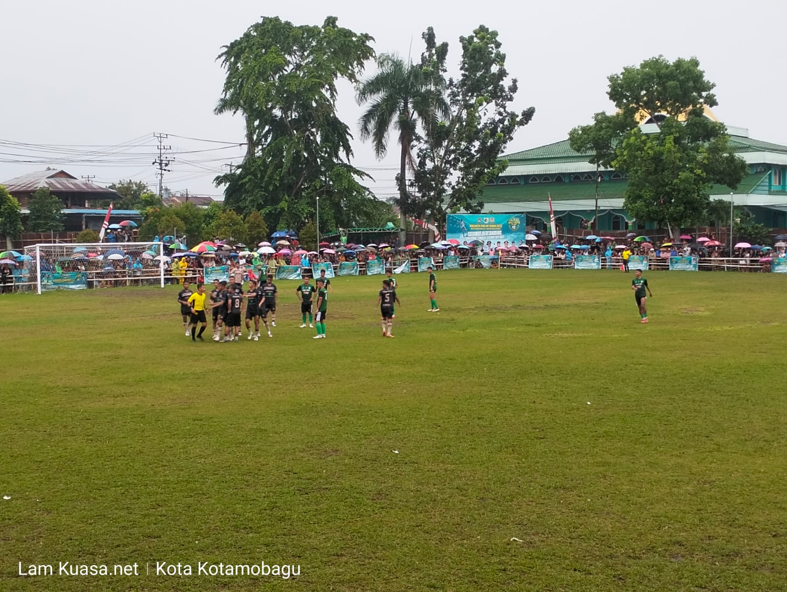 Laga semifinal yang berlangsung di Lapangan Aruman Jaya, Kelurahan Motoboi, Kecamatan Kotamobagu Selatan berjalan sengit dan penuh tensi sejak menit awal. Kedua tim menampilkan permainan terbuka dengan tempo tinggi, saling jual beli serangan demi mengamankan tiket menuju partai puncak. Hingga peluit panjang dibunyikan, skor imbang 1-1 tak berubah, memaksa pertandingan ditentukan lewat adu penalti.