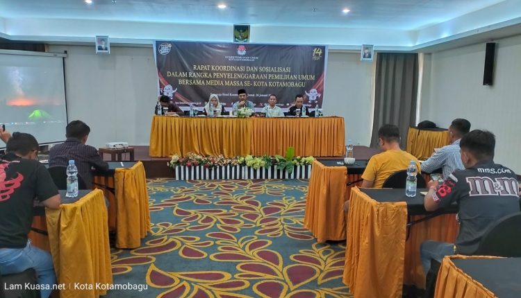 KOTAMOBAGU – Komisi Pemilihan Umum (KPU) Kotamobagu menggelar sosialisasi Pemilu 2024 bersama media massa, Jumat (26/1/2024).