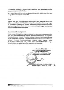 LHP atas Laporan Keuangan Pemkot Kotamobagu 2019: