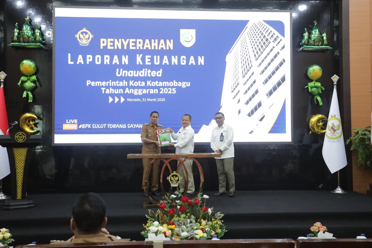 ANADO – Pemerintah Kota (Pemkot) Kotamobagu secara resmi menyerahkan Laporan Keuangan Pemerintah Daerah (LKPD) Unaudited Tahun Anggaran 2025 kepada Badan Pemeriksa Keuangan (BPK) Perwakilan Provinsi Sulawesi Utara.