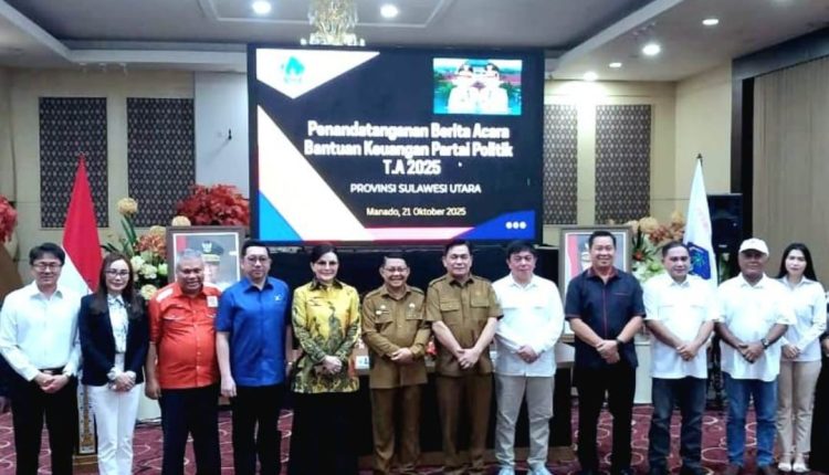 MANADO – Pemerintah Provinsi Sulawesi Utara menyalurkan bantuan keuangan tahun anggaran 2025 sebesar Rp1,7 miliar kepada sembilan partai politik yang memiliki kursi di DPRD Sulut hasil Pemilu 2024.