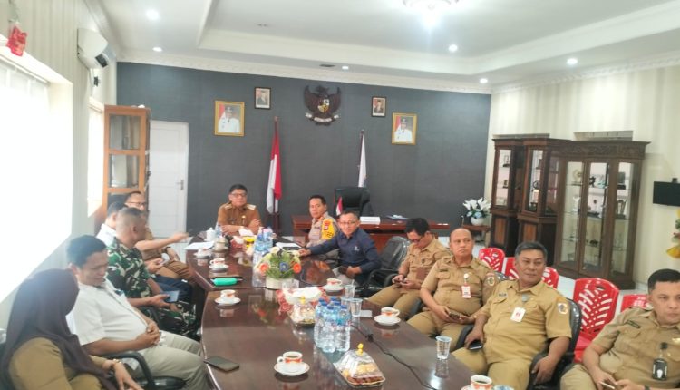 KOTAMOBAGU – Penjabat (Pj) Wali Kota Kotamobagu, Abdullah Mokoginta memimpin rapat bersama unsur Forum Koordinasi Pimpinan Daerah (Forkopimda) guna membahas ketersediaan stok bahan pokok menjelang bulan suci ramadhan, yang berlangsung di ruangan kantor Wali Kota, Senin (10/2/2025).
