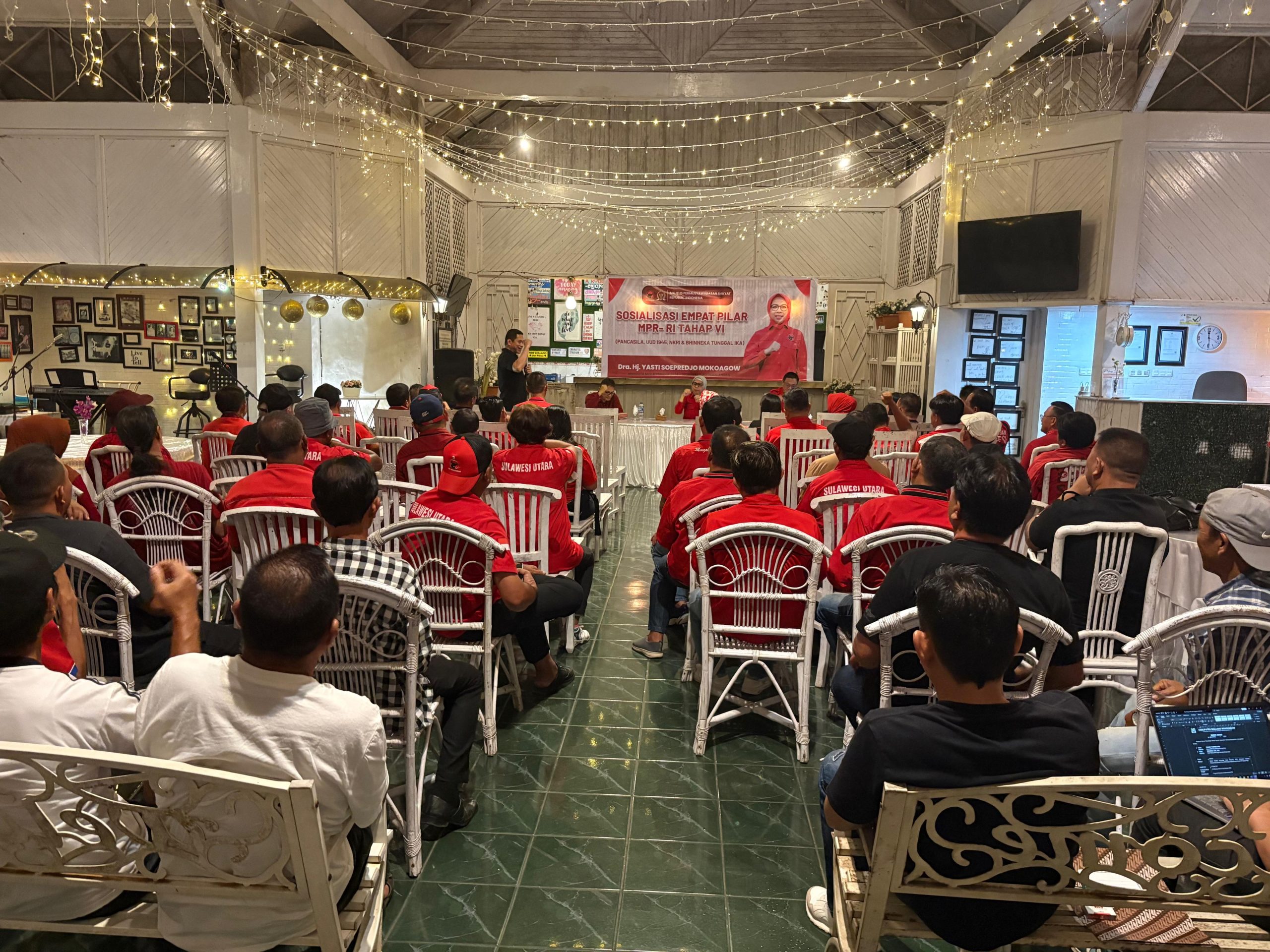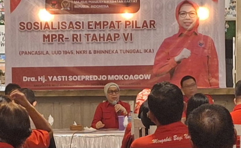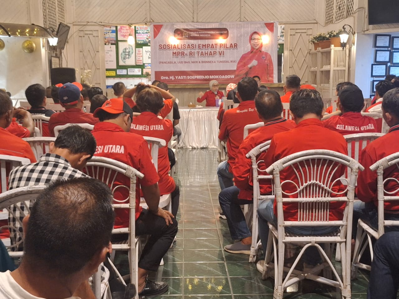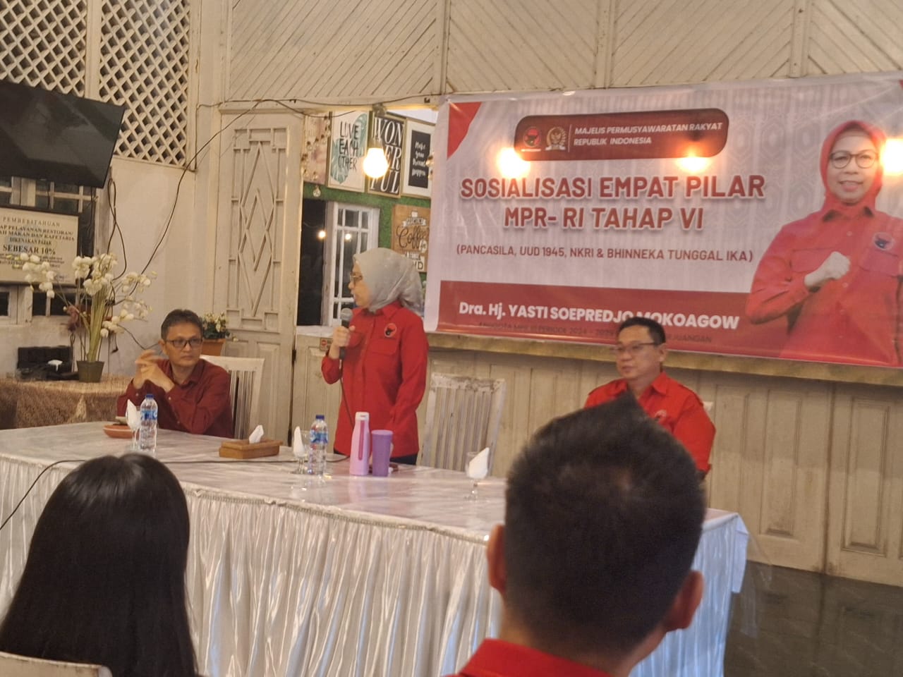 KOTAMOBAGU — Anggota MPR RI Fraksi PDI Perjuangan, Yasti Soepredjo Mokoagow (YSM), menggelar kegiatan Sosialisasi Empat Pilar MPR RI di D’Talaga Resto, Desa Bungko, Kota Kotamobagu, Sulawesi Utara, Selasa (7/10/2025).