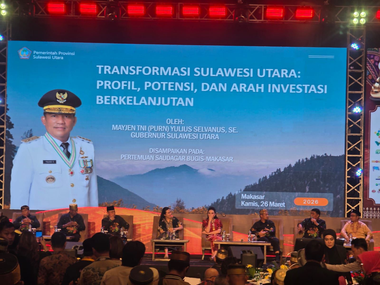 MANADO – Gubernur Sulawesi Utara, Yulius Selvanus Komaling mengajak saudagar Bugis-Makassar untuk memanfaatkan peluang investasi di Sulawesi Utara yang dinilai sebagai pintu gerbang perdagangan kawasan Asia Timur dan Pasifik. Ajakan tersebut disampaikan dalam Pertemuan Saudagar Bugis-Makassar (PSBM) ke-XXVI di Hotel Claro, Makassar, Kamis (26/3/2026).
