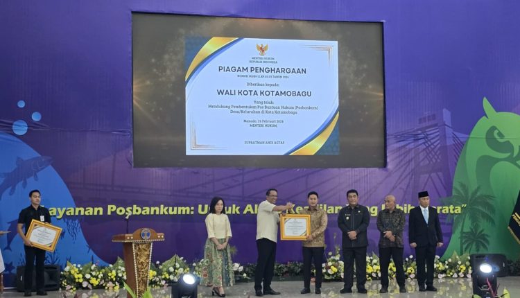 Pada kesempatan tersebut, Pemerintah Kota Kotamobagu menerima penghargaan dari Menteri Hukum Republik Indonesia, Supratman Andi Agtas atas dukungan dan komitmen dalam pembentukan Pos Bantuan Hukum (Posbakum) di tingkat desa dan kelurahan. Penghargaan tersebut diserahkan langsung oleh Menteri Hukum RI yang didampingi Gubernur Sulawesi Utara.