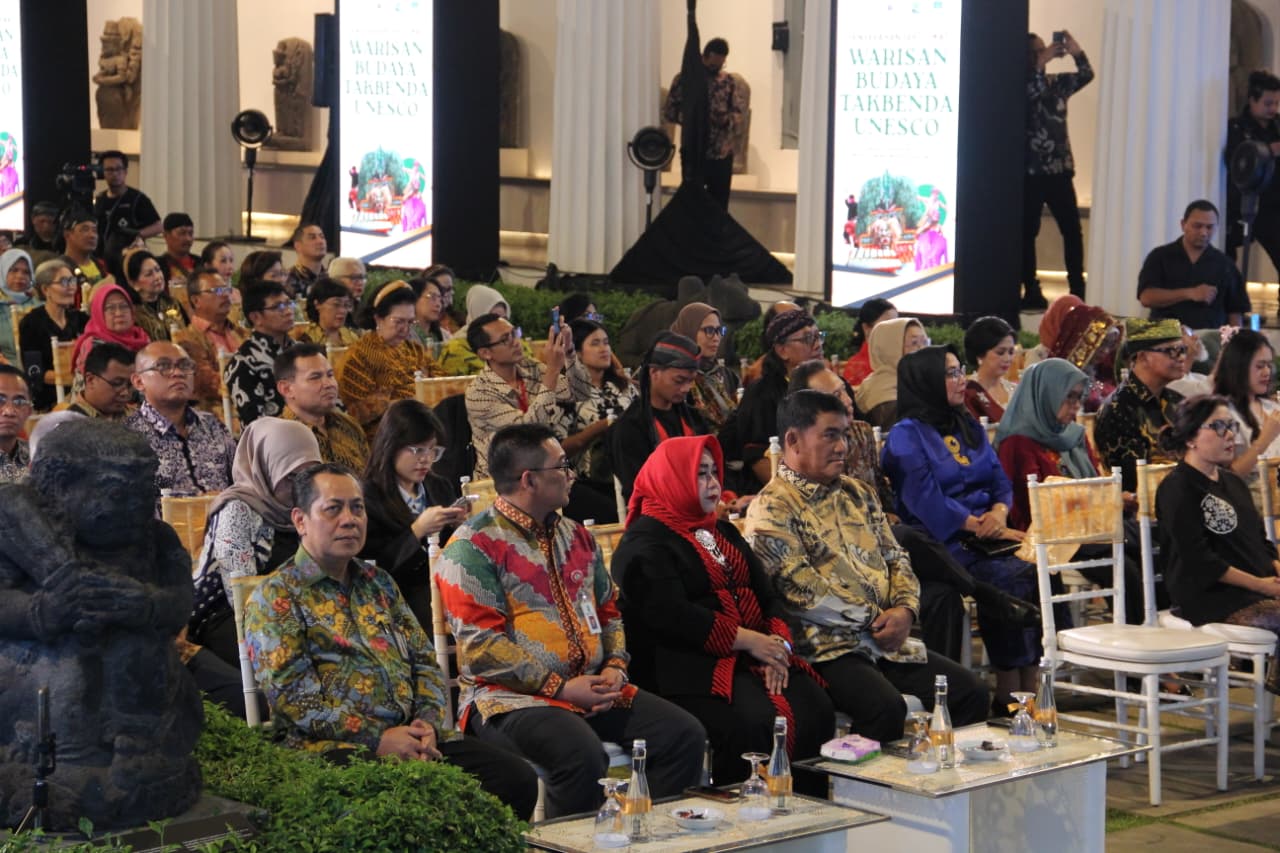 Penyerahan tersebut dirangkaikan dengan penyerahan sertifikat UNESCO untuk Reog Ponorogo dan Kebaya.