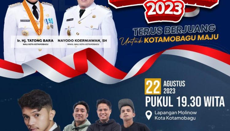 Menurut koordinator acara Gebyar Kemerdekaan 2023 Pemerintah Kota Kotamobagu, Pra Sugiarto Yunus, yang juga Kepala BPKD Kota Kotamobagu menyampaikan bahwa Akan dilaksanakan konser Gebyar Kemerdekaan pada tanggal 22 Agustus 2023