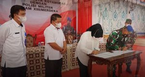 Kuasa.NET, KOTAMOBAGU – Wali Kota Kotamobagu, Tatong Bara, tandatangani Naskah Hibah dan Berita Acara serah terima Barang Milik Daerah (BMD) berupa Tanah dari Pemerintah Kota Kotamobagu kepada Polisi Militer Kodam (Pomdam) XIII/Merdeka, yang diwakili Komandan Pomdam XII Merdeka, Kolonel. Cpm. Tri Cahyo B.A. S.IP, MH, di Aula Rumah Jabatan Wali Kota Kotamobagu, Rabu (8/9/2021)