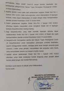 Wali Kota Tatong Bara Terbitkan Edaran Tentang Pengaturan Pelaksanaan Salat Idul Fitri
