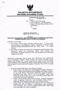 Kuasa.NET, KOTAMOBAGU – Walikota Kotamobagu Tatong Bara menerbitkan surat edaran nomor: 155/W-KK/VII/2020 tentang protokol pelaksanaan kegiatan di rumah ibadah dalam kondisi pandemic covid-19 di Kotamobagu.