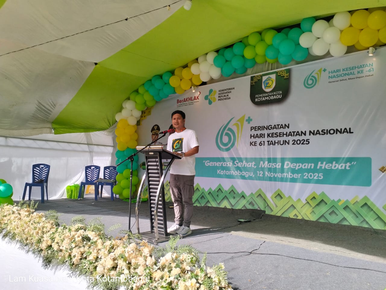 KOTAMOBAGU – Wakil Wali Kota Kotamobagu, Rendy Virgiawan Mangkat (RVM) menghadiri peringatan hari Kesehatan Nasional (HKN) ke 61 tahun 2025, yang bertempat di halaman Rumah Sakit Umum Daerah (RSUD) Kota Kotamobagu, kelurahan Pobundayan, kecamatan Kotamobagu Selatan, Rabu (12/11/2025).