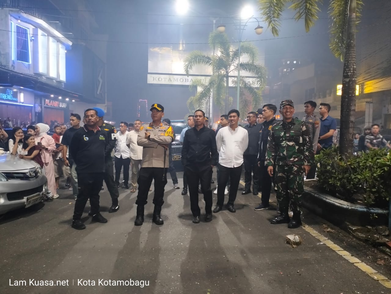KOTAMOBAGU – Wali Kota Kotamobagu, Weny Gaib bersama Wakil Wali Kota Kotamobagu, Rendy Virgiawan Mangkat serta unsur Forum Koordinasi Pimpinan Daerah (Forkopimda), melakukan pemantauan situasi keamanan dan ketertiban masyarakat (kamtibmas) di wilayah Kota Kotamobagu pada malam pergantian Tahun Baru 2026, Rabu (31/12/2025).
